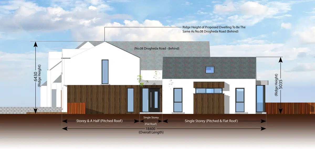 An elegant storey and a half house that is divided into three distinctive elements. A central private entrance link serves a storey and a half bedroom block that faces the road and a single storey living block that faces and connects with a secluded rear garden. The site was particularly challenging from a planning point of view, with difficulties around access, visibility splays and demolition consent for the existing property. However through extensive dialogue with the planning department these challenges were overcome.