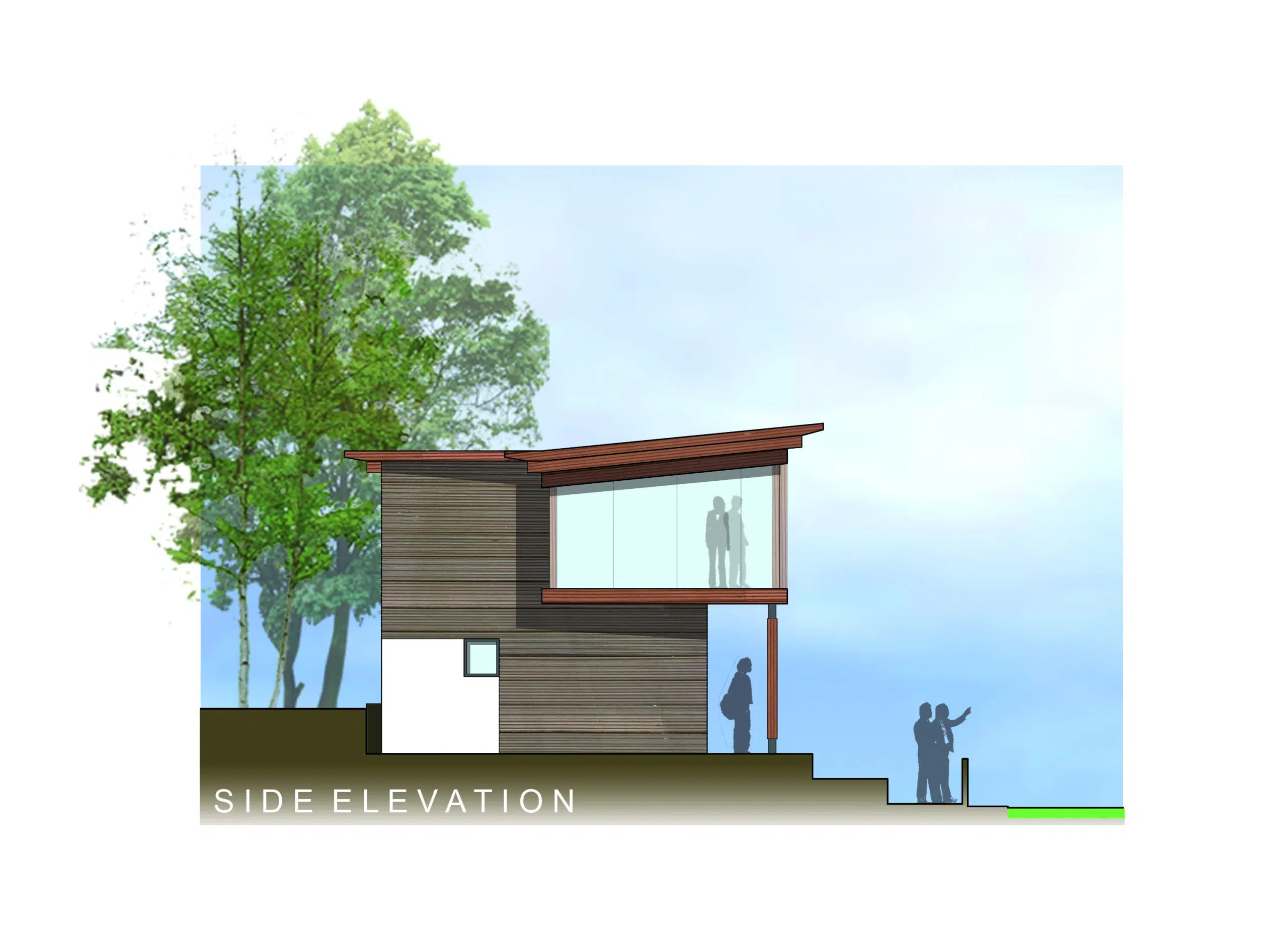 A design of a new club house for Cookstown Hockey Club, incorporating a first floor viewing deck and finished in timber cladding and white render.